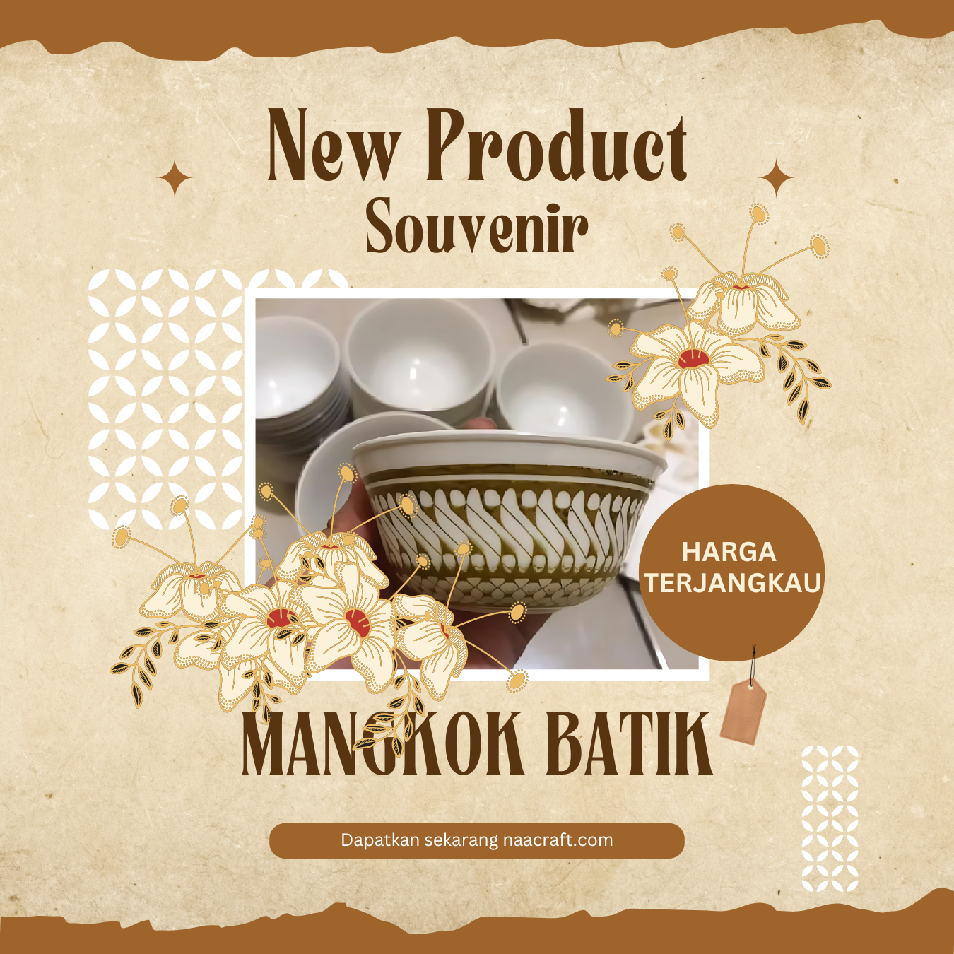 Naa Craft menghadirkan Mangkok Batik yang unik dan bernilai seni tinggi. Produk ini bukan hanya sekadar peralatan makan, tetapi juga sebuah karya seni yang memperkaya